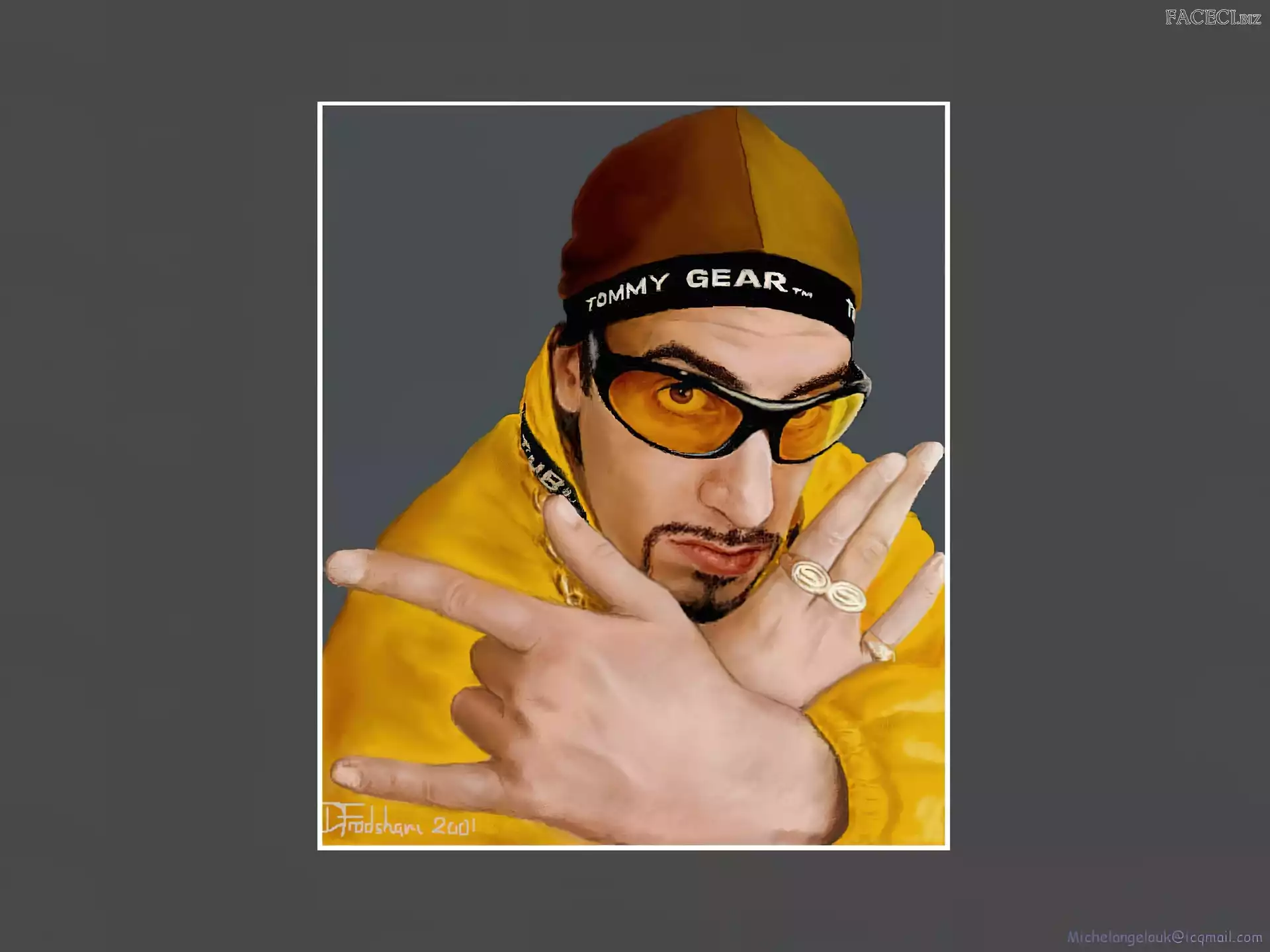 Sasha Baron Cohen, zdjęcia Sasha Baron Cohen, gruby łańcuch Sasha Baron Cohen, niebieski dres złoty strój, Sasha Baron Cohen, okulary Sasha Baron Cohen, żółty strój Sasha Baron Cohen, borat Sasha Baron Cohen, ali g